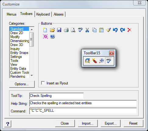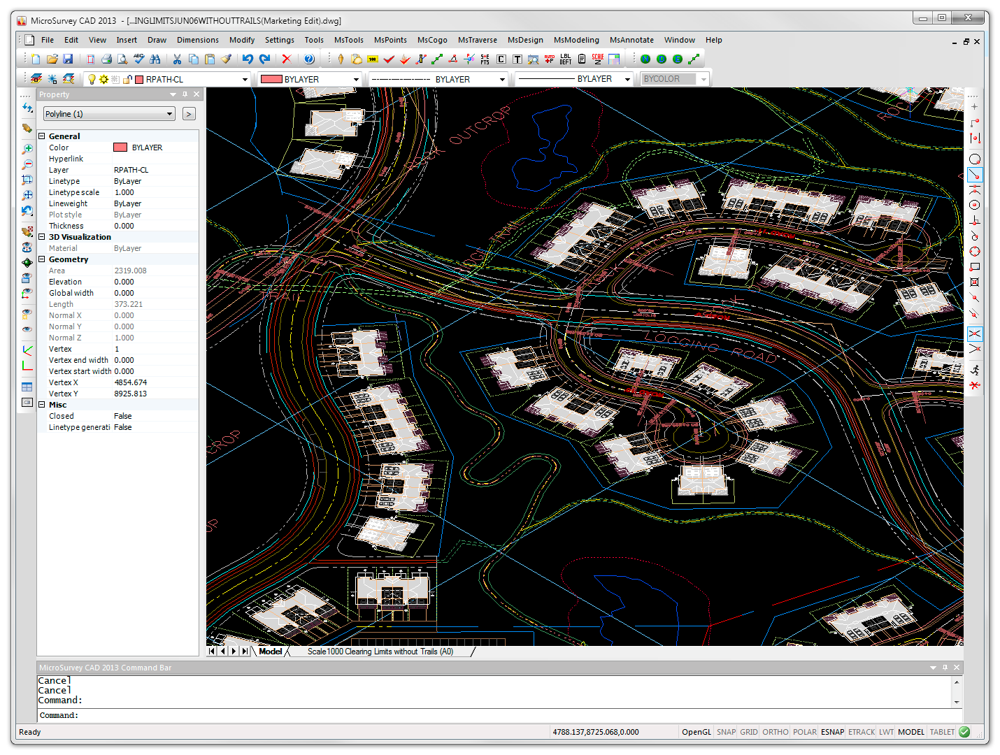 More than any other program, MicroSurvey CAD allows you to customize your own work area. Toolbars, menus, screen areas, and command line placement can all be controlled by you. Toolbars: The new toolbar editor is simple. Edit existing toolbars, or create a new one. Just drag a button into empty space and you immediately have a new toolbar. Menus: We include a graphical menu editor that allows you to cut and paste different menus together, remove sections to streamline the menus for your own use, or create entirely new menus for specific types of jobs. Lisp Programming: Unlike other surveying packages, our program supports your own lisp programs. You can run Autolisp programs that run on the command line or even sophisticated versions that use DCL dialog boxes. With our lisp programming extensions, you can read and write to the coodinate database directly from lisp programs. Screen Areas: You can turn on and off the command line, the properties toolbar, and the status line. These all can be toggled quickly to maximize your drawing window for more productivity. Layout: You control whether you want the Command Line at the top or bottom, whether you want to see a side menu area, and how you want multiple windows to appear.